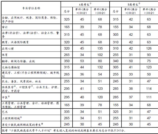 ①A类考生:报考地处一区招生单元的考生。 一区系、天津、、山西、辽宁、、、上海、江苏、浙江、安徽、福建、江西、山东、河南、湖北、湖南、广东、沉庆、四川、陕西等21省(市)。②B类考生:报考地处二区招生单元的考生。广西、海南、贵州、云南、、甘肃、青海、、新疆等10省(区)。③工学照应专业! 力学[0801]、冶金工程[0806]、动力工程及工程热物理[0807]、水利工程[0815]、地质资本取地质工程[0818]、船舶取海洋工程[0824]、航空宇航科学取手艺[0825]、刀兵科学取手艺[0826]、核科学取手艺[0827]、农业工程[0828]。且结业后正在国务院发布的平易近族区域自治处所定向就业的少数平易近族通俗高校应届本科结业生考生;或者工做单元正在国务院发布的平易近族区域自治处所,且定向就业单元为原单元的少数平易近族退职人员考生。