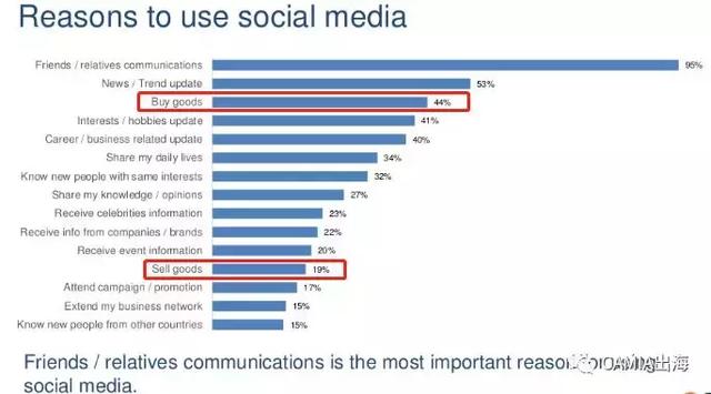 日常社交天然是利用社交最大来由。值得留意的是,不少受访者利用社交为的是买工具,该指数正在本次查询拜访中占44%。还有少部门受访者用于售卖商品。